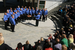 øverst til v.fra korstafett oppe til h. fra oppstillingsplassen nede til h. oppstillingsplassen nede til h. Kåre og Norvald psyker seg opp til konsert, (mens personen bak tenker kun på mat) |